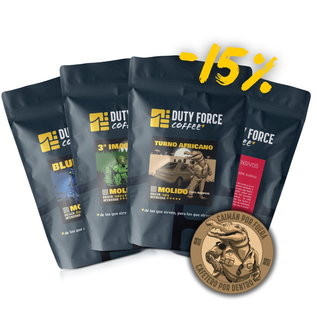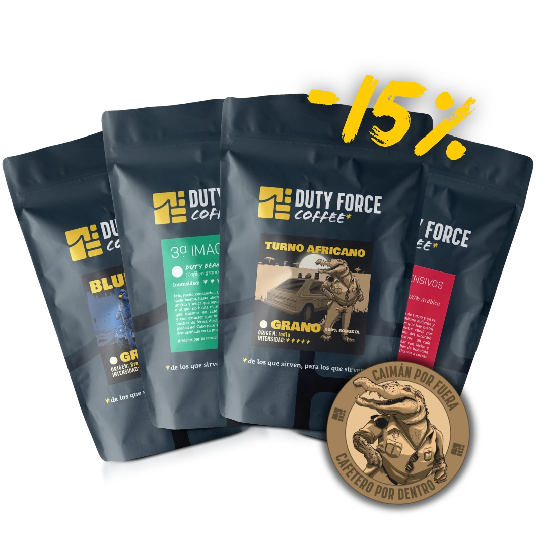 El molido sirve para cualquier cafetera, pero si quieres vivir la experiencia Duty Force completa, te recomendamos cogerlo en grano y seguir nuestras recomendaciones.
